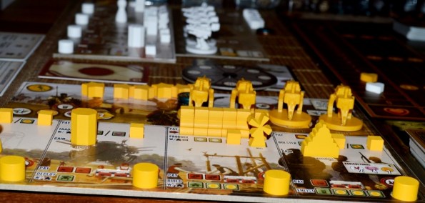 Оформление и качество. Вживую компоненты и арты выглядят так же здорово, как на фотографиях, если не лучше. Тактильные ощущения от реалистичных ресурсиков удовлетворят даже самого требовательного барахольщика. На поле же все эти металлические слитки, мешки с зерном, бочки и деревяшки смотрятся шикарно. Да, они и крупноваты, но зато своим размером привлекают падких на халяву соперников, да позволяют быстрей сосчитать, сколько чего у тебя имеется. Отмечу, что в retail-версии ресурсы тоже симпатичные, – не скучные кубики, а фигурные деревянные фишки. Кстати, миплы вместо пластиковых фигурок абсолютно не напрягают, зря волновался.