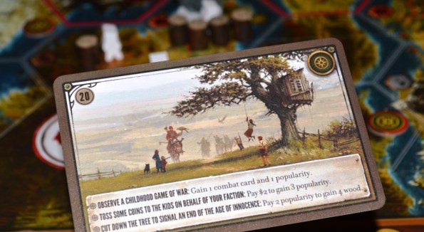 Основные принципы игры. Если обобщить, то Scythe – это неспешное ковыряние в планшетах; развитие через постройки, кубики технологий и сеть рабочих; зачитывание карт встреч и получение с них бонусов (за игру каждый из нас вскрыл по 4-5 таких карточек), поход на локации с целью добыть недостающие ресурсы, сражения за центр (центр – это не только очки, но и карта завода с дополнительным улучшенным действием). Но это отнюдь не полноценная военная стратегия и даже не 4Х, а смелое многогранное и атмосферное евро в своём тщательно продуманном и очень симпатичном мире.