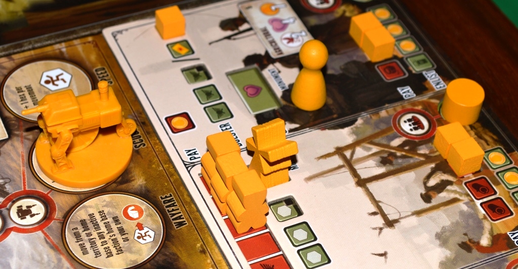 Планирование. Напомню, что Scythe – это игра на оптимизацию действий и развитие (планшета и территорий). Под оптимизацией подразумевается то, что в свой ход нужно по полной использовать выбранную часть планшета. И, если верхний уровень зачастую требует скинуть лишь монетку, то на нижний понадобится целая вереница ресурсов. Вот именно это эффективное планирование очерёдности действий во избежание холостых ходов мне очень приглянулось.