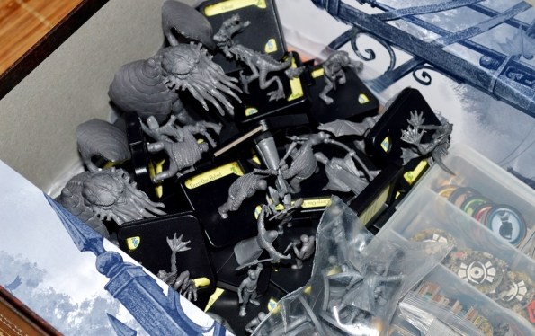 Компоненты. Коробень такая же здоровенная, как, например, у Forbidden Stars. После выдавливания жетонов и тайлов, а также сборки фигурок (их нужно всунуть в старые добрые квадратные подставки с прорезями для жетонов) возникла проблема, как всё это хранить.