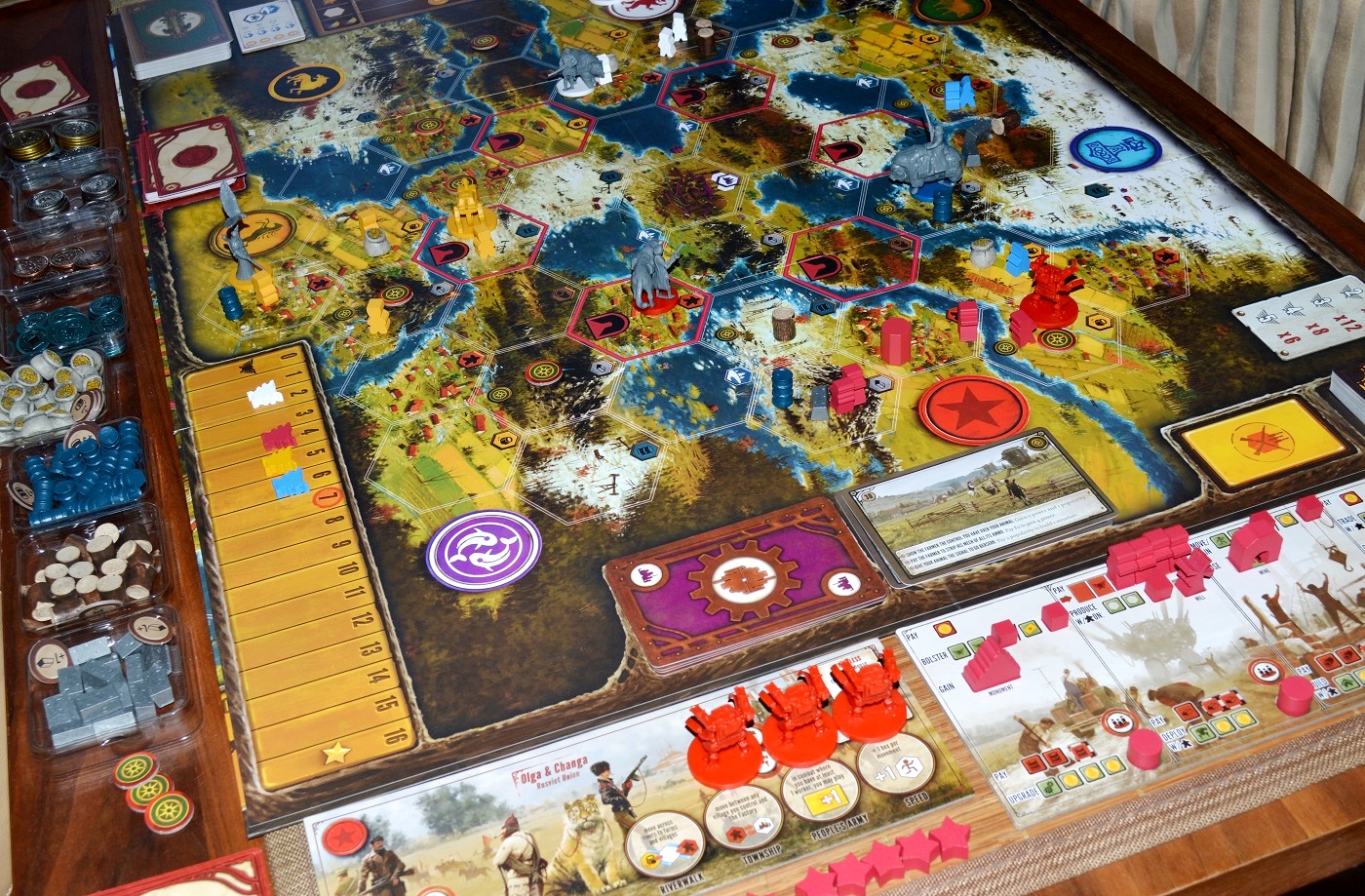 Что касается нашей партии на четверых, то она ожидаемо оказалась в разы интересней дуэли, у нас все остались довольны. Толкание на карте, необходимость оберегать свой производственный кусок, соседи по обе стороны, дающие бонусы за enlist, и в целом, ощущение насыщенной евро-стратегии при длительности партии примерно в 90 минут – всё это однозначно добавило позитивных эмоций.