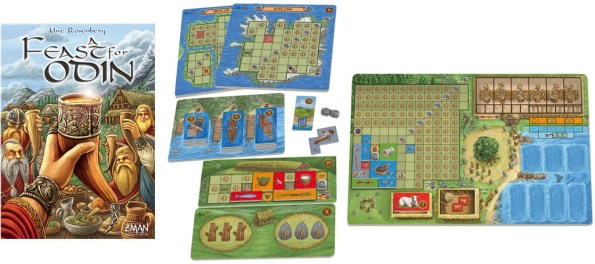 The Oracle of Delphi. Третья игра тоже от плодовитого мастера, но уже от Штефан Фельда. Плаваем по морям с целью выполнить 12 заданий Зевса: собрать подношения и доставить их в определённые храмы или убить конкретных монстров, затаившихся на островах. Как всегда, действия выполняются через оригинальную систему манипуляций с цветными кубикам. Звучит интересно, но не так хардкорно, как A Feast for Odin.