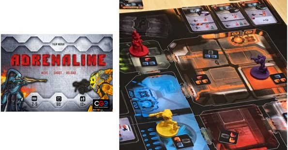 Adrenaline. Динамичная стрелялка “каждый за себя” от Czech Games Edition. Бегаем по полю, собираем пушки, патроны и мочим друг друга. Интересно, что всё это происходит без кубиков. Раны наносятся автоматически, исходя из специфики оружия, а подсчёт очков за убийства происходит, как в заправской евроигре. Вообще, сами чехи называют Adrenaline увлекательным евро-шутером.
