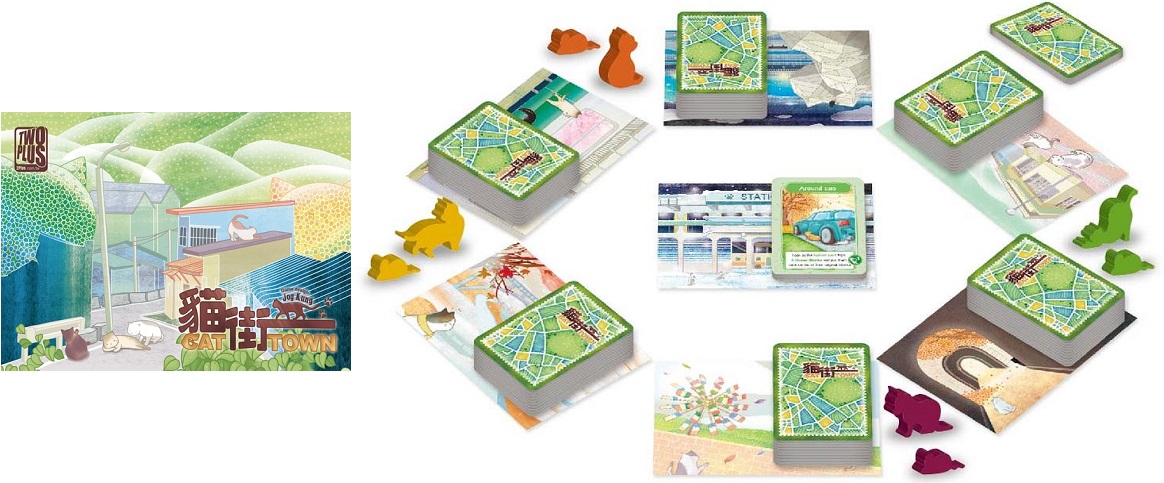 Cat Town. Напоследок три игры от тайваньских авторов. Кате приглянулась семейная забава про котиков. Бегаем котами по улицам, вскрываем и запоминаем одни карты, разыгрываем другие, попутно собираем сеты, за которые даются очки. Простенькая игрушка с милыми картинками.