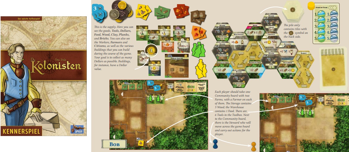 Colonists. Полистал 20-страничное описание нескольких ходов – игра всё ещё кажется любопытной. Комплексная цивилизация на развитие собственного поселения с детализированным менеджментом рабочей силы. Настораживает только, что на BGG игра числится в категории Solitaire Games. Вероятно, взаимодействия с соперниками, пускай даже косвенного, мы не увидим.