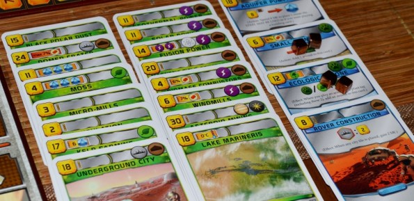 Для внедрения проекта потребуется указанная сумма и выполнение определённых требований, например: наличие трёх водных гексов на поле или указанный минимальный уровень на треке кислорода. Также на картах имеются символы, взаимодействующие с другими проектами и дающие возможность платить за них ресурсами.