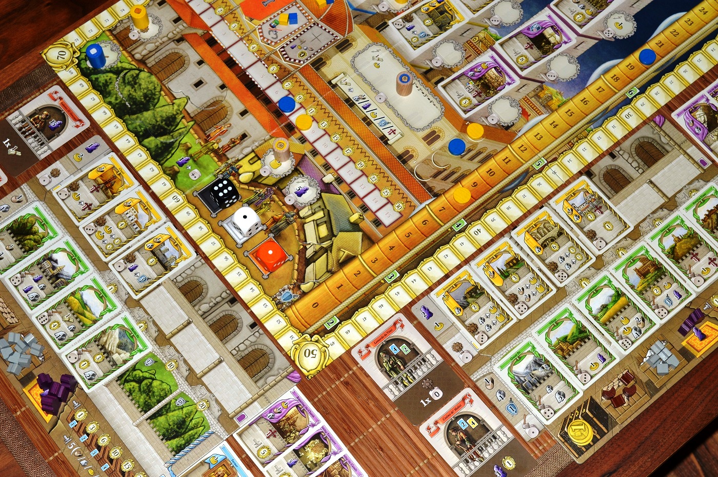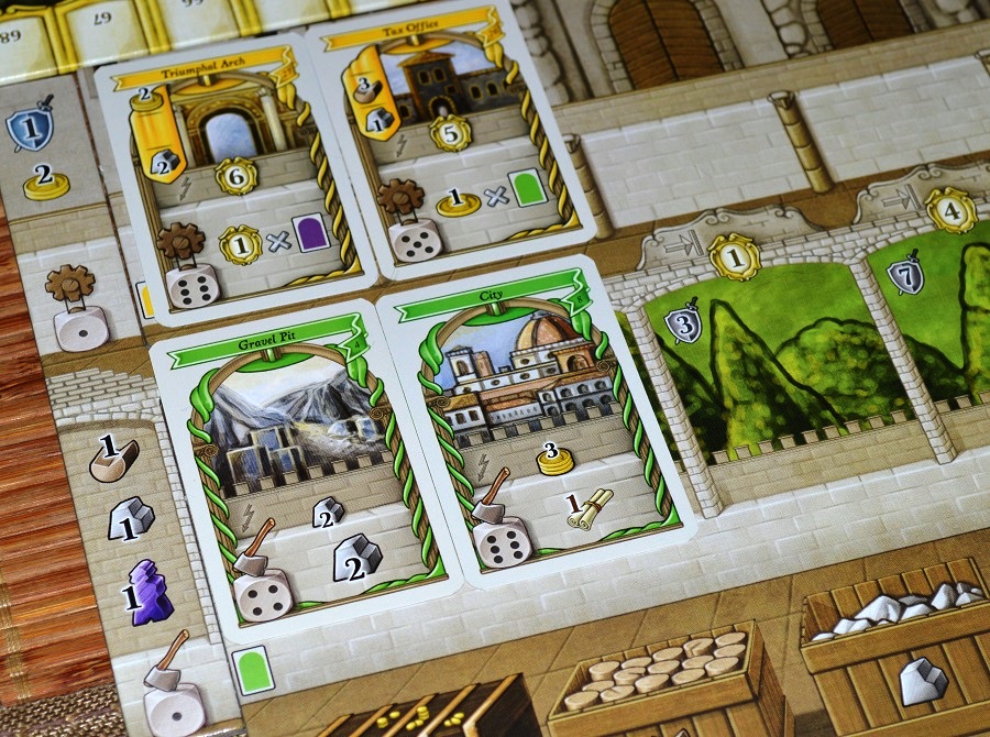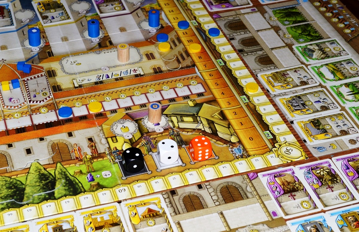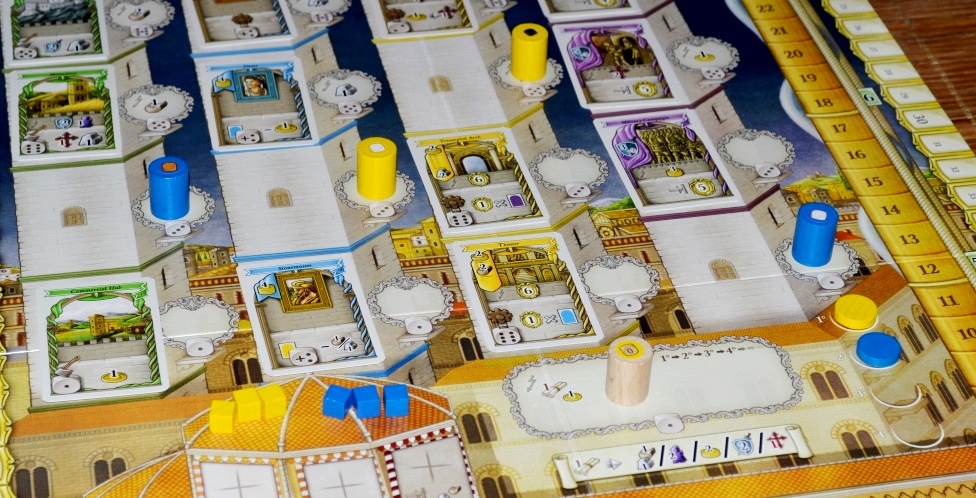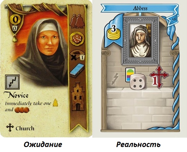 Всё вышеперечисленное внесло свою лепту в кризис, который тоже неожиданно порадовал. Строгие ограничения и дополнительная плата при выставлении рабочих; тяжёлые первые раунды, когда территорий и зданий выложено совсем мало; “выходки” кубиков, выдающих низкие значения; церковные штрафы; значимость очерёдности хода – из-за всего этого ты постоянно задаёшься вопросами “откуда взять столько ресурсов/монет”, “как всё успеть” и “почему у моих лидеров такие зверские условия”.