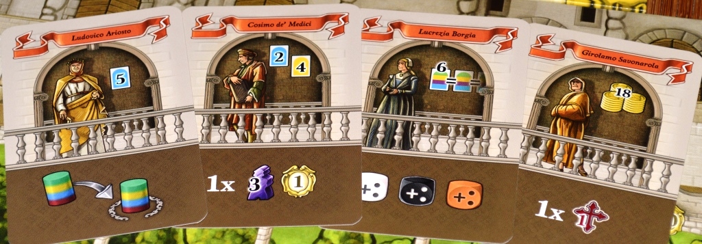 Повторюсь, Lorenzo тот ещё сухарь, евро до мозга костей: постоянная возня с ресурсами, выкладывание карточек туда-сюда, перемещение маркеров по абстрактным трекам, очки за всё подряд и т.п. Поэтому подозреваю, что игра должна понравиться тем, кто неравнодушен к прошлым творениям авторов, таким как Marco Polo и Grand Austria Hotel.