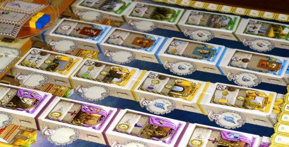 Чем же Lorenzo выделяется среди себе подобных? Первый и наиболее оригинальный момент в игре – это рабочие, продуктивность которых зависит от значений, выпавших на кубиках. Эти кубы (именно кубы, т.к. по размеру они оказались огромными) бросаются в начале каждого раунда и указывают на силу ваших подопечных. Допустим, если на белом кубике выпала тройка, значит, полезность работяги с белой наклейкой равняется трём.