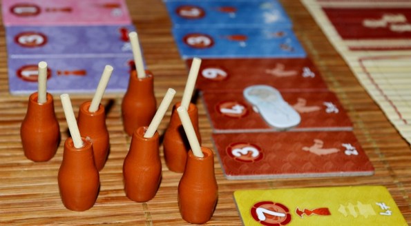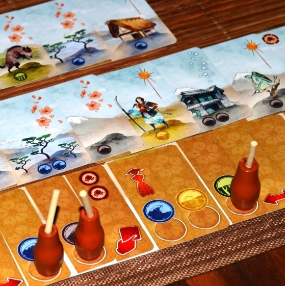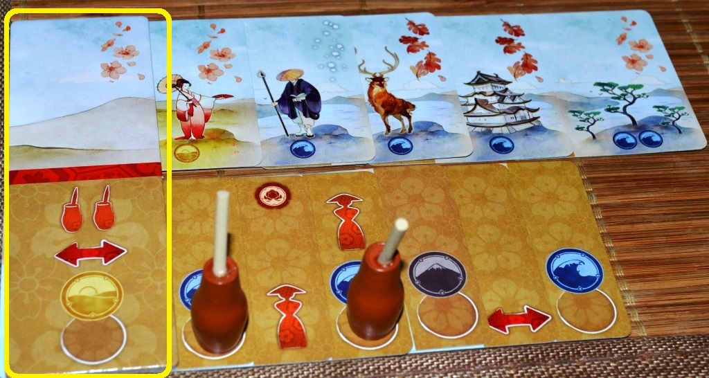 Отсюда и вторая моя печаль – вдвоём играть в Kanagawa не очень интересно. Во-первых, все просто пасуют и ждут три карты (за редким исключением), во-вторых, мало конкуренции за дипломы.