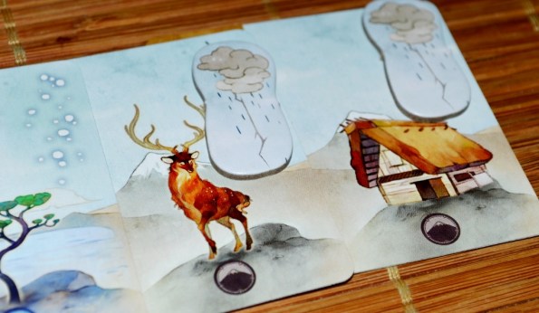 Нарисованная карточка продолжает полотно и в конце партии принесёт победные очки. Помимо символа сезона в верхнем левом углу и бонусного очка, на картах может быть изображён один из четырёх ключевых объектов: животное, деревья, персонаж или здание.