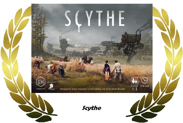Scythe. Тут наверное должна быть номинация “лучшее оформление”. Мир Scythe, иллюстрации и компоненты – эти три аспекта просто шикарны. Сама игра тоже оказалось неплохой, что стало приятным дополнением.