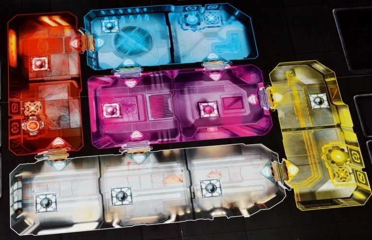 Поле складывается из двух частей. Части двусторонние, что позволяет собрать 4 варианта арены, которые будут отличаться расположением, размером и количеством комнат.