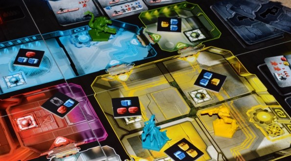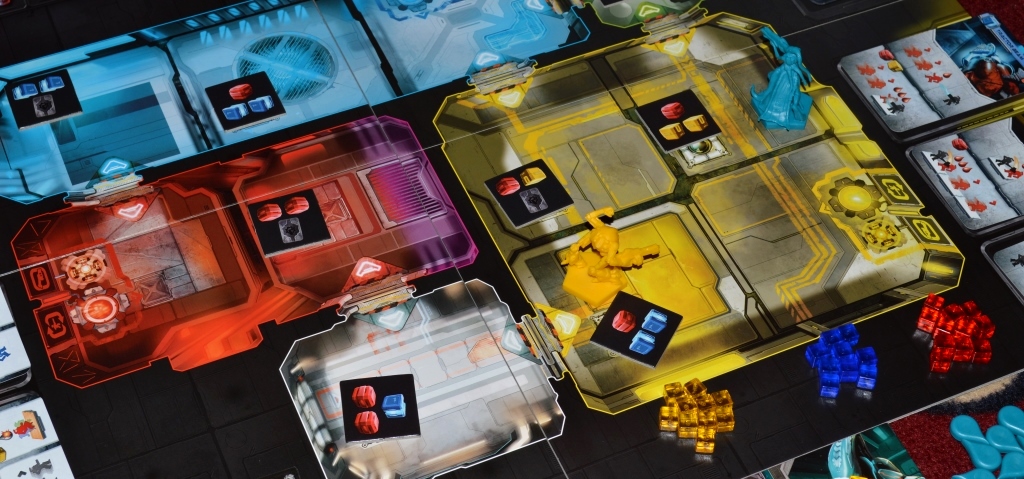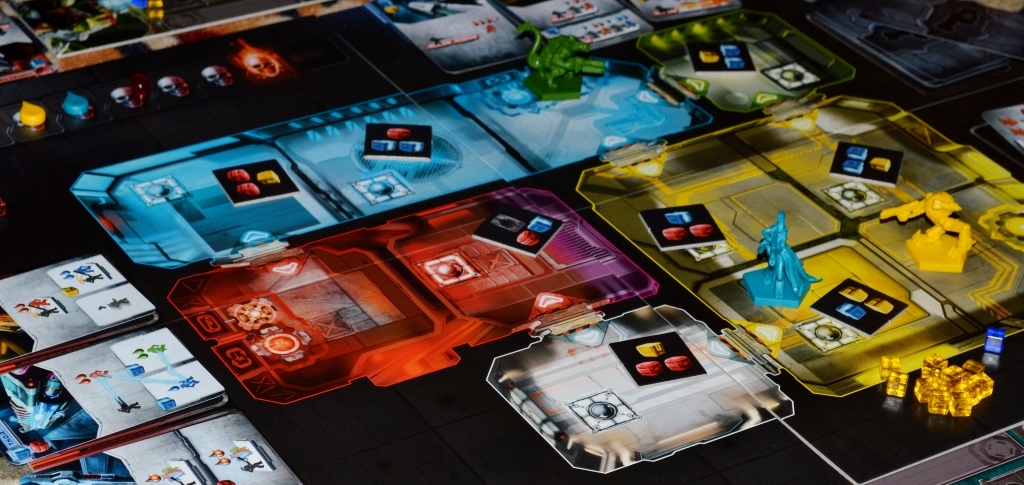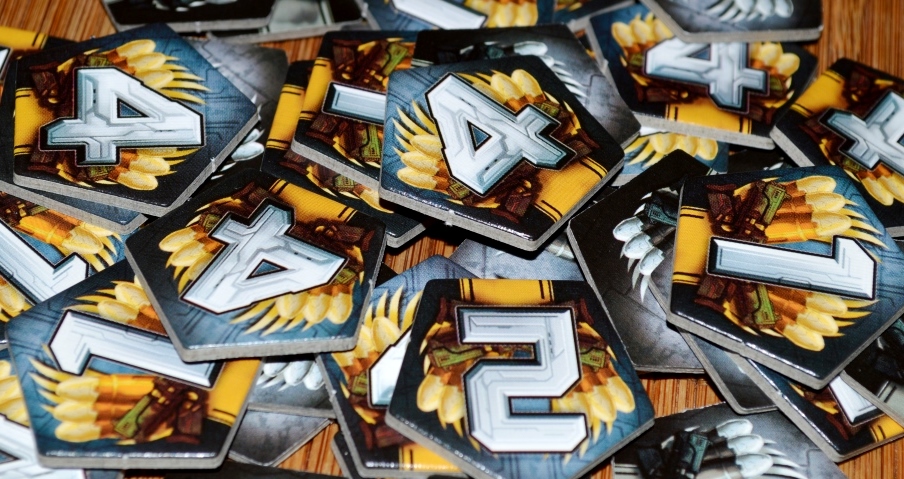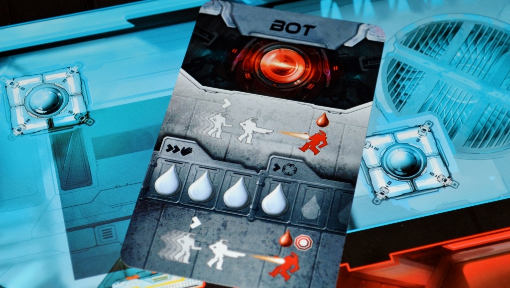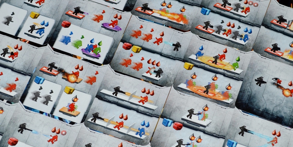 Adrenaline нарекли первым евро-шутером, и неспроста. От евро здесь занудное распределение очков (наверное, самый сложный момент игры), менеджмент ресурсов в виде разноцветных кубиков патронов и много открытой информации. Игроки видят всё доступное оружие и боеприпасы и знают, что имеется у соперников. Тут нет бросков кубов или случайных событий. Единственное, что вносит небольшую встряску – это карты усиления, которые тянутся взакрытую и держатся в секрете. Но опять же, разных их всего четыре штуки.