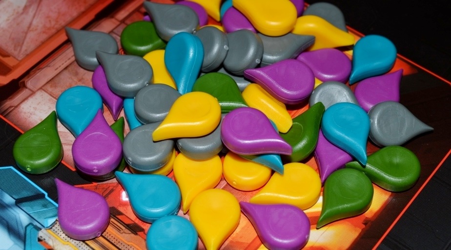В конце скорятся все планшеты, на которых остались капли. И, наконец, добавляются очки за лидерство по “добиваниям”, которое определятся по цвету фишек на треке черепков (первое место – 8 ПО, второе – 6 и т.д.). Жетоны очков вскрываются, подсчитываются, и определяется победитель.