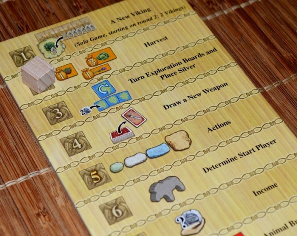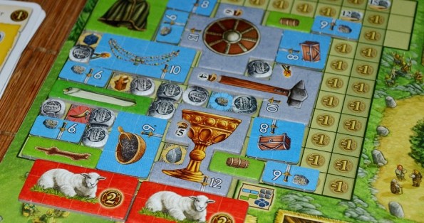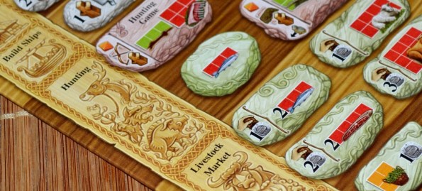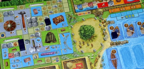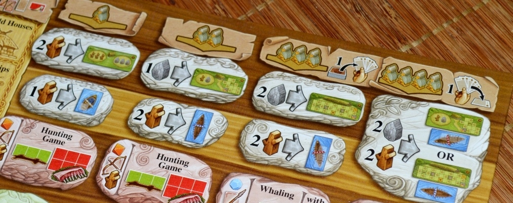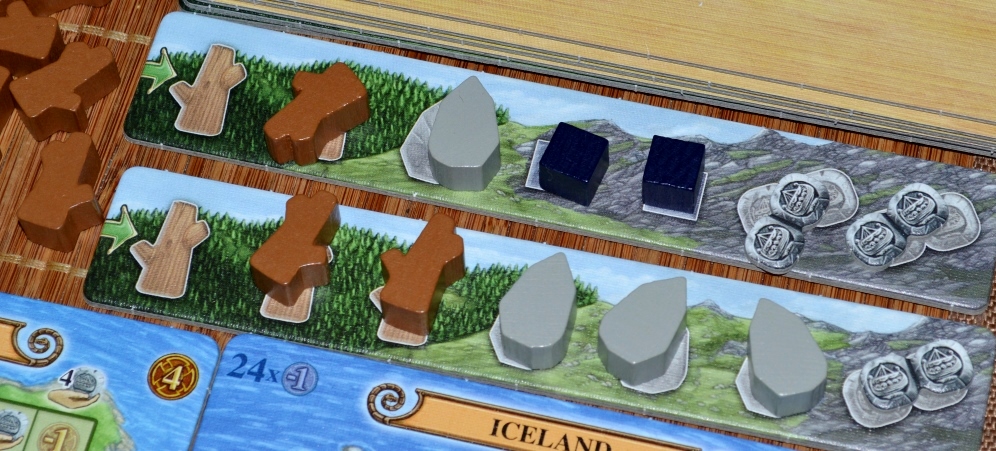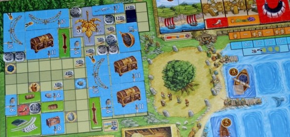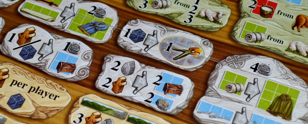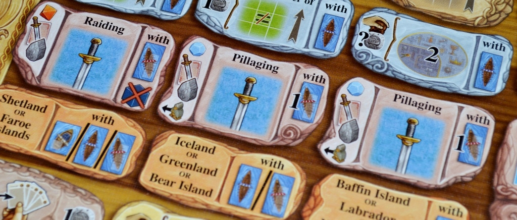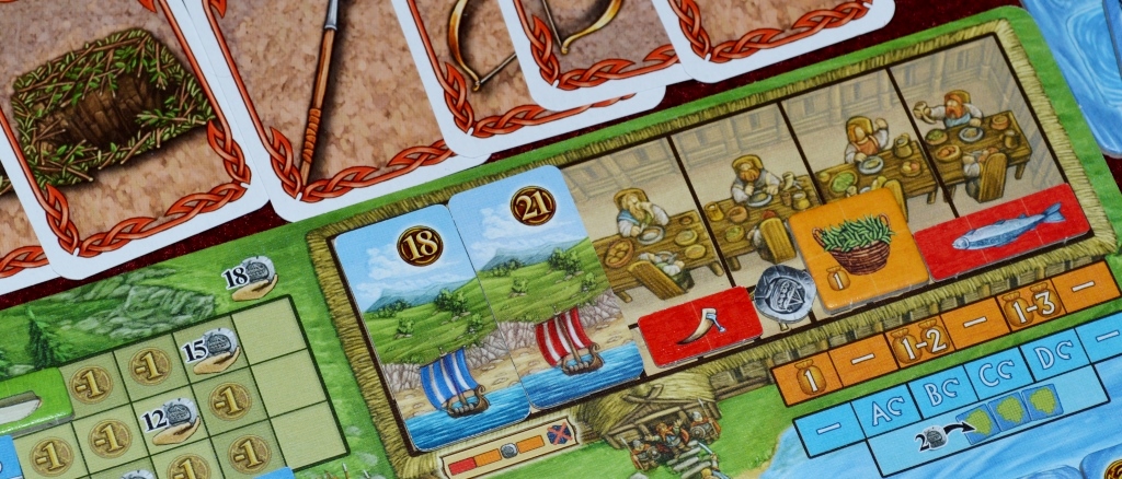 Перед тем, как пуститься в перипетии правил, замолвлю пару словечек об оформлении. Оно обычное. Ну, тот, кто знаком с Агриколой, Каверной и Fields of Arle, ничего нового для себя не отметит. Такие нейтральные функциональные картинки. Немножечко подогнана под тематику цветовая гамма – больше зелёного и синего, дабы передать дух морских приключений викингов.