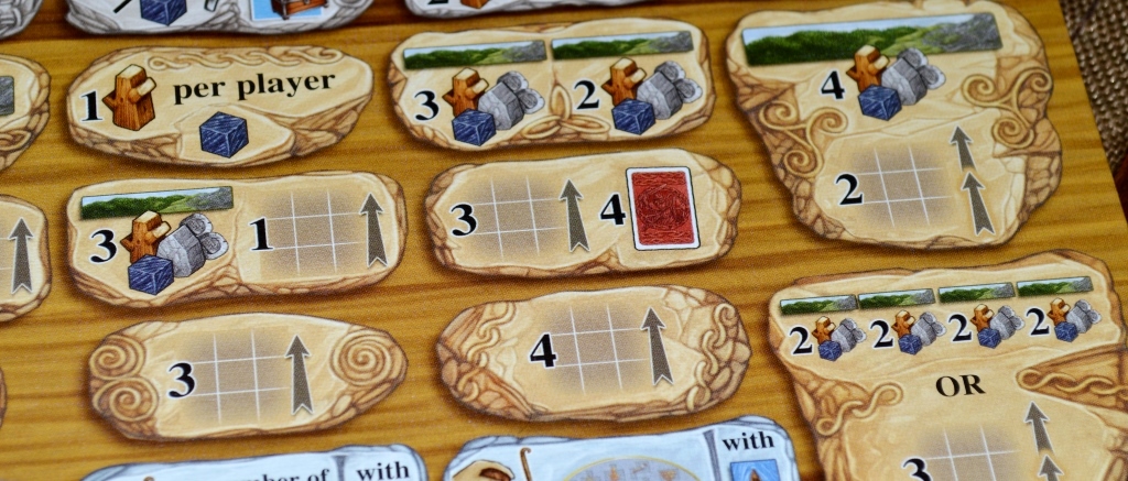 Строительство зданий и кораблей. Сбрасываем указанное число дерева и/или камня и берём соответствующий тайл.