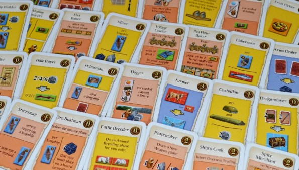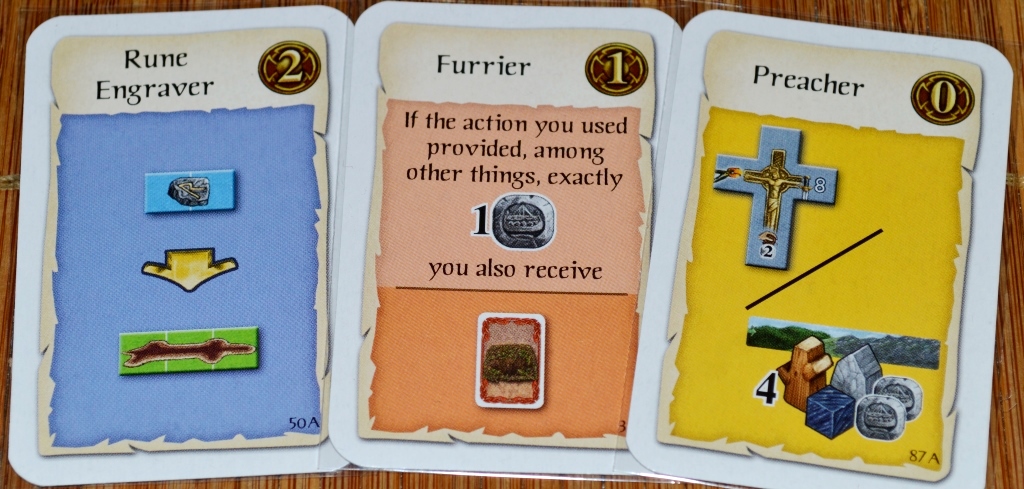 По опыту 25 партий в Агриколу могу сказать, что карты занятий в Feast for Odin отнюдь не такие мощные и необходимые. По большому счёту, их можно вообще проигнорировать. С другой стороны, если подпитать ими выбранную стратегию и наиболее часто используемые действия, то выгода будет ощутимой.