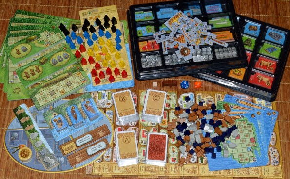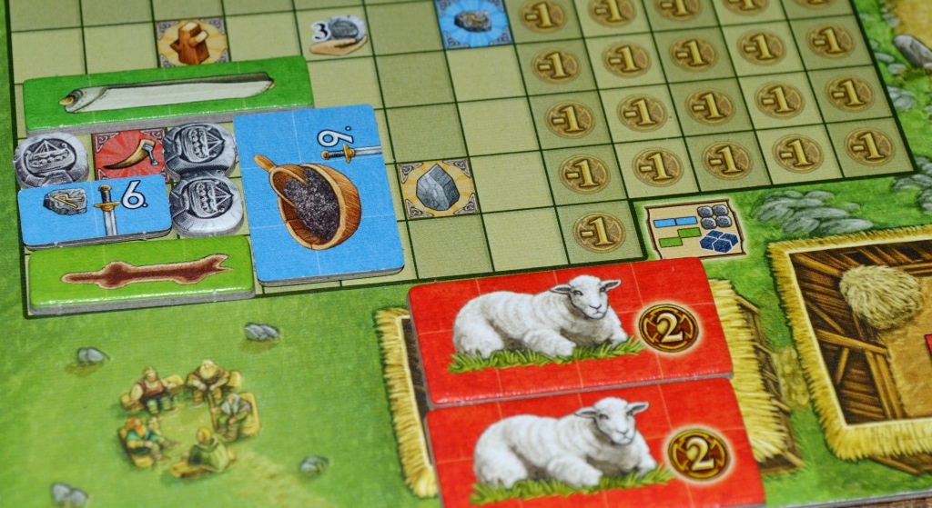Но если сравнивать с Агриколой и Каверной, то места столько же занимает. Зато тут быстрей подготовка, и не надо каждый раунд следить за пополнением действий ресурсами (только заполнить одну “горную” полоску).