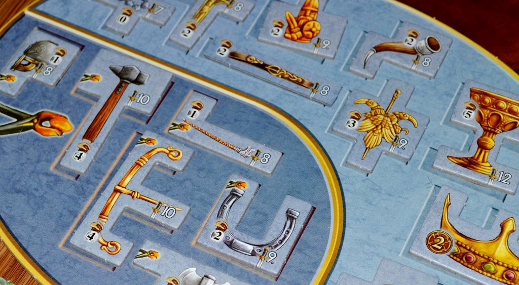 Выкладывание одежды, драгоценностей и столовых приборов на лужайку выглядит действительно нелепо, но если абстрагироваться от этих нюансов, то можно разглядеть за ними оригинальную и увлекательную игру, которая объединила в себе кое-что из Агриколы (карты занятий), Fields of Arle (поле с кучей действий) и Patchwork (складывание пазла).
