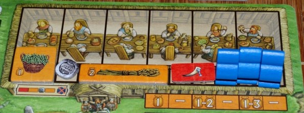 Если отбросить всякие второстепенные административные фазы, такие как получение нового рабочего, сбор урожая, переворачивание тайлов земель и размещение на них монеток, смена первого игрока, обновление источников ресурсов и т.п., то останется лишь выбор и выполнение действий, получение дохода/бонусов, рождение скотинки и кормёжка своих подопечных.