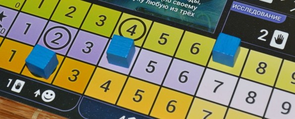 Не делает чести игре и оформление: “фирменные” огрехи в качестве карт, вялые бездушные картинки а-ля Star Realms, отсутствие эргономичности и стрёмный внешний вид личных планшетов. Вишенкой на торте стал маркер раундов, который я чуть не выкинул, так как думал, что это лишний кружочек картона, оставшийся от стандартизированной пресс-формы.