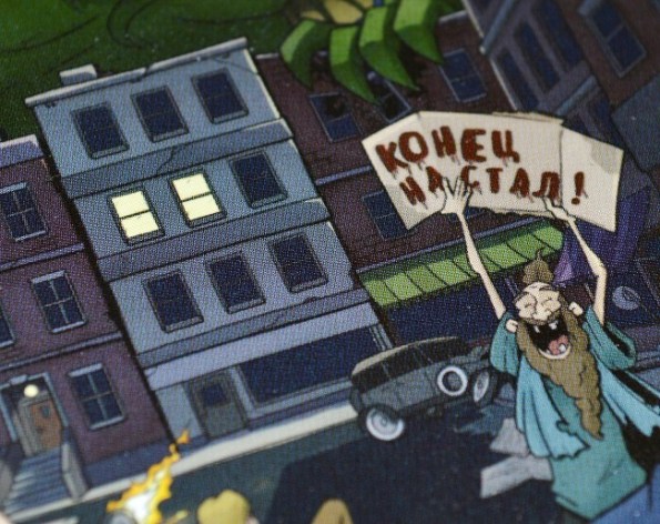 Иллюстрации на любителя. Понятно, что юморной мультяшный стиль под стать озорному и не претендующему на серьёзность процессу, но мне было бы любопытно поиграть с картами, оформленными во взрослом и мрачном ключе.
