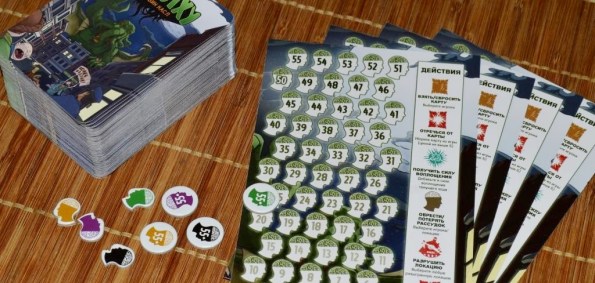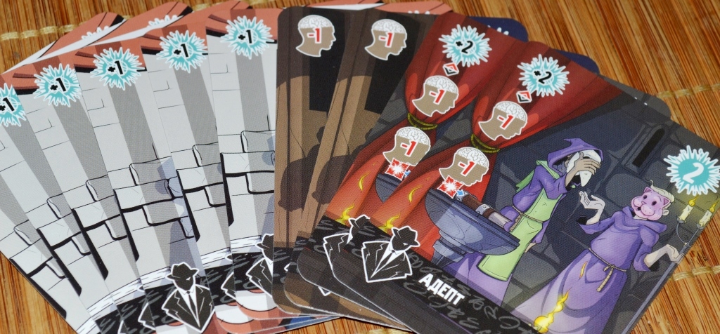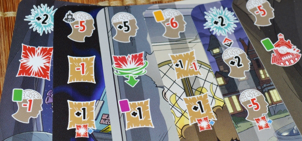 Попутно игроки проверяют стойкость нервишек друг друга, низвергая атаки на показатель рассудка. Помимо денежек и силы, свойства из общей колоды позволяют тянуть дополнительные карты, лечиться, избавляться от слабых карт и проворачивать витиеватые комбинации.