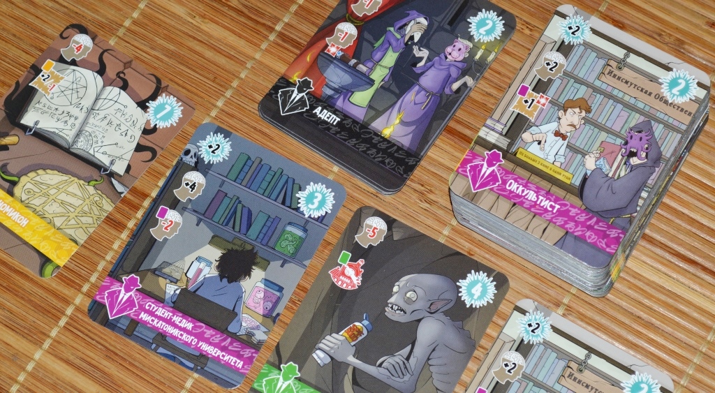 Игрушка основана на движке популярного декбилдинга Star Realms, где упор делается на уничтожение соперника, а не на сбор победных очков. Но Миры Ктулху – это не просто смена темы и редизайн оформления, в правила внедрили и ряд приятных новшеств.