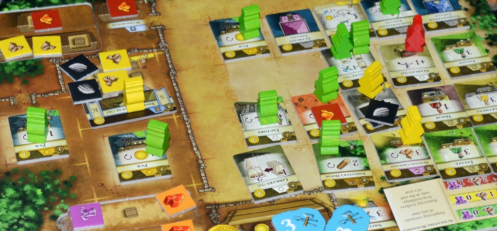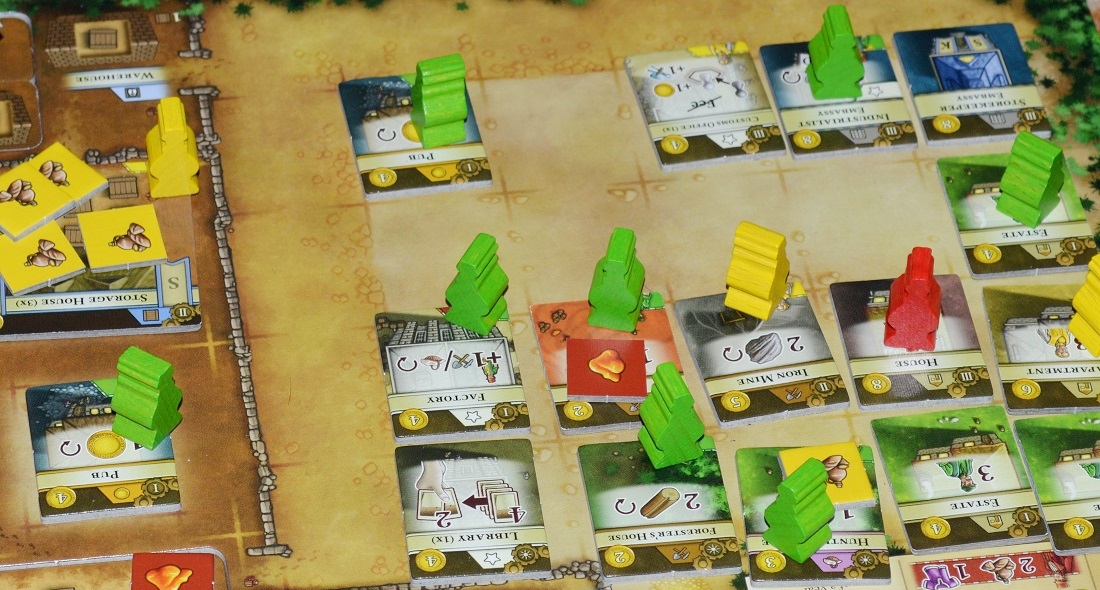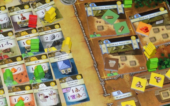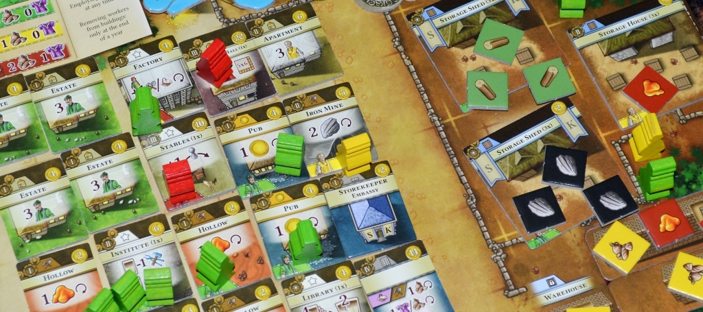 Процесс довольно предсказуем. Развитие поселения материализуется на персональных планшетах. Изначально у игроков лишь пара ферм, небольшое хранилище на 3 ресурса и кладовая. По ходу партии в деревеньках появляются новые вспомогательные постройки, расселяются рабочие и складируются пожитки. Процветает тут и “шило на мыло”, ведь основная задача игроков – это эффективно пользоваться действиями на центральном поле, дабы заполучить целую вереницу ресурсов и товаров, а потом их пустить на возведение зданий, розыгрыш карт и обмен на очки.