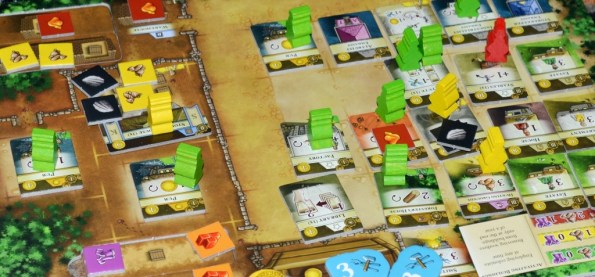 Рынки – это специальные локации, которые состоят из двух гексов и работают, как “порталы”. На рынок можно попасть с любого места, что помогает быстрей добраться до нужного действия. Кроме этого, каждый год свойство рынков меняется согласно вытянутой карточке, на которой указано аж три доступные опции: возможность продать лишние ресурсы за очки; просто получить халявные ресурсы; или продублировать одну из локаций на поле.
