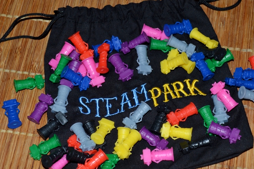 Нам с Катей SP нравится по причине наличия кубов и оригинальной темы постройки парка аттракционов своей мечты. Причём, не обычного, а работающего на пару и зазывающего железных человечков-посетителей, которые оставляют после себя лужи грязной смазки. К плюсам также можно отнести короткие партии и скоростное набрасывание нужных результатов (последнее по душе не всем).