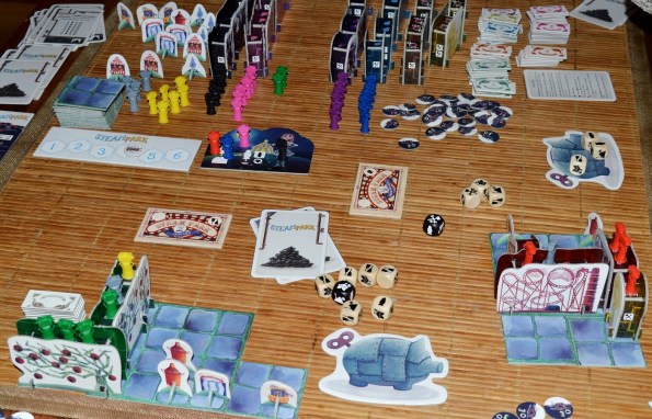 А вот с реиграбельностью в Паропарке беда. Ситуацию хоть как-то спасали карточки целей, но, в остальном, партии проходили всегда одинаково, а одни и те же горки и стенды приедались достаточно быстро.