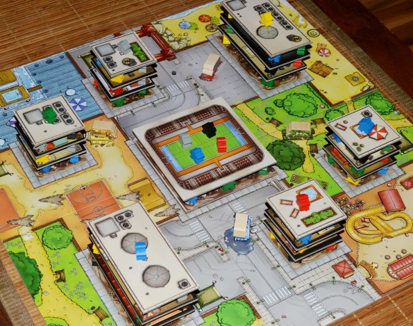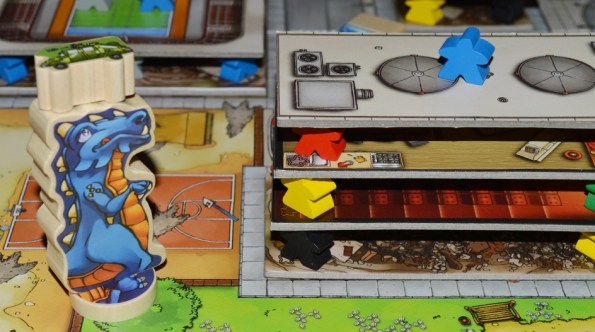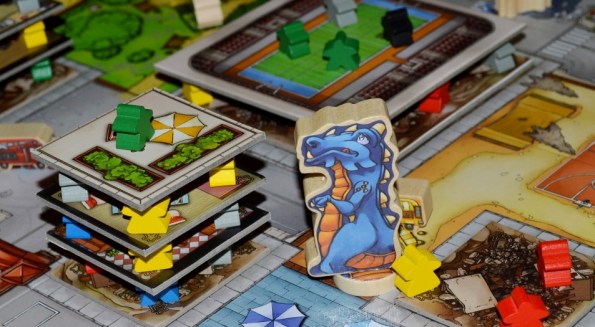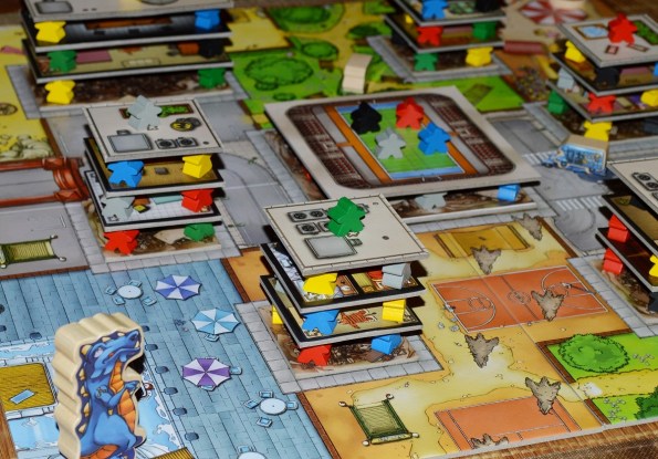 Вообще, разложенная на столе игра не оставит равнодушным никого. И всё это из-за привлекающих взгляд трёхмерных зданий. Они имеют вид бутербродов, состоящих из нескольких прослоек тайлов и миплов. Да и само действо достаточно необычное и шумное. Далее в двух абзацах, о чём, собственно, эта игрушка.