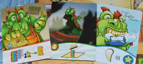 После постройки мипло-города игрокам выдаётся по монстру и набору из трёх карточек. Карта персонажа указывает на источник дополнительных победных очков, которые получит игрок при выполнении её условий. Карта суперсилы обозначает уникальную спец-способность монстра. И наконец, секретный приём является более мощной одноразовой способностью, которая до применения держится в тайне от соперников.