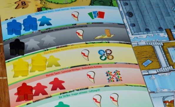 Более того, миплы тут не просто мясо, а личности. Жёлтые – блондинки, серые – пенсионеры, синие – журналисты, зелёные – солдаты, чёрные – бизнесмены, красные – герои. И эти названия не просто для красоты. На цветной стороне поля беженцев наборы миплов активируют атмосферные эффекты. Например, военные атакую с неба и заставляют потерять сразу 2 зуба, а герои спасают съеденных (требуют вернуть из живота 4 миплов).