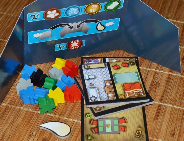 Что касается компонентов, то сделано всё качественно и надёжно, чтобы даже после нескольких десятков партий тайлы и поле не развалились. Оформлено тоже всё ярко, стиль иллюстраций на картах способностей мультяшный и с юморком.