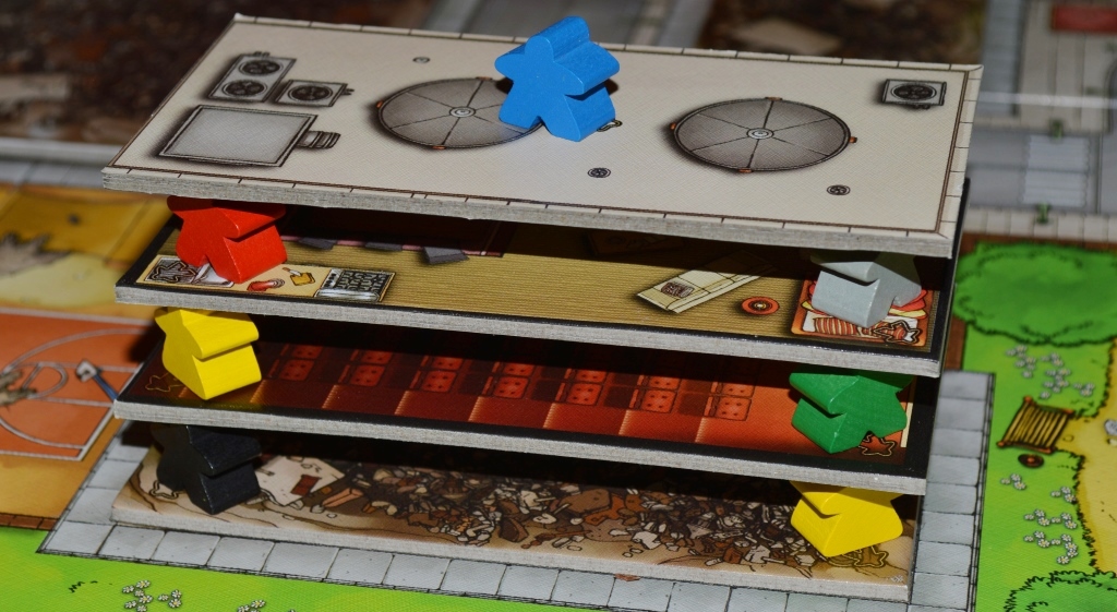 Вообще, разложенная на столе игра не оставит равнодушным никого. И всё это из-за привлекающих взгляд трёхмерных зданий. Они имеют вид бутербродов, состоящих из нескольких прослоек тайлов и миплов. Да и само действо достаточно необычное и шумное. Далее в двух абзацах, о чём, собственно, эта игрушка.