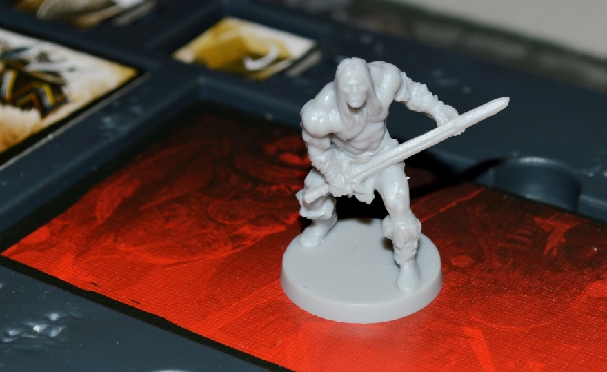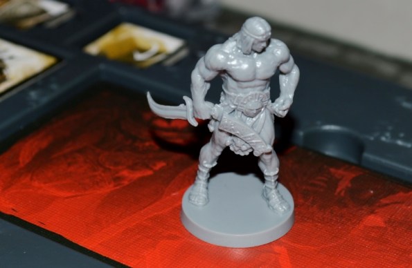 К сожалению, есть досадные проколы в оформлении и комплектации. Даже в базовых сценариях используются фигурки, которых в коробке нет, и их предлагается заменить другими, выделив цветными базами. Болезнь FFG по недокладыванию кубиков оказалась заразна, в Конане их тоже не хватает. Ну и наиболее неоднозначный момент – странная фигурка самого Конана. Я сперва подумал, что вот знаменитый варвар: