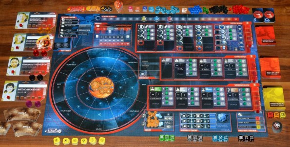В первой обучающей миссии, в принципе, так и было – этакий менеджер поломок + ряд целей. Конечно, там не каждый раунд что-то ломается, но красные кубики “сбоя” кладутся часто. И ты должен думать, что чинить, а что закрывать, чтобы не тратился кислород/энергия. А может и вовсе переставить рабочую деталь с другой системы.