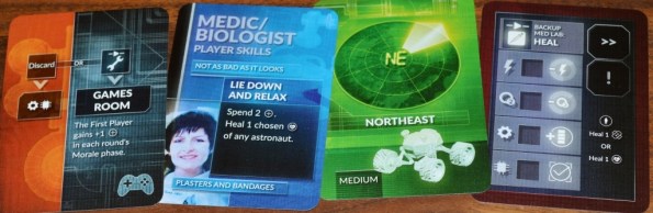 Сразу бросаются в глаза некоторые отличия от Робинзона. Это и новый трек состояния команды или стресса (помимо морали), и средства передвижения и, конечно же, отсутствие карточек изобретений. Как точно подметили на BGG: в Робинзоне вы начинаете ни с чем и пытаетесь построить как можно больше; а в Марсе у вас сначала есть всё, но оно постепенно разваливается.