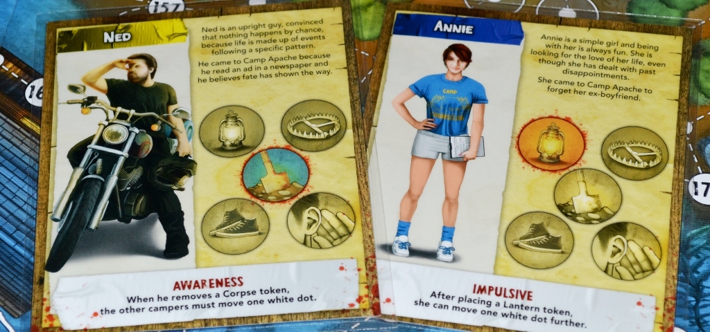 Остальные игроки выбирают цвет, которым будут играть, и получают три карточки персонажей, соответствующих данному цвету. На партию берётся один, но если в течении главы он погибает, то на следующую придётся выбирать нового. На карточке персонажа вкратце описана его история, увлечения, мотивы приезда в «Апач». Описания довольно забавные. Есть персонаж, которого зовут Джейсон. Из-за имени и любви к ужастикам друзья часто сочиняют о нём страшилки.