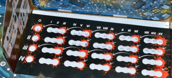 В этой и третьей главе маньяк каждые три хода обязан сообщать, где он находился три хода назад и выкладывать один случайный жетон следа (они же стартовые жетоны героев).