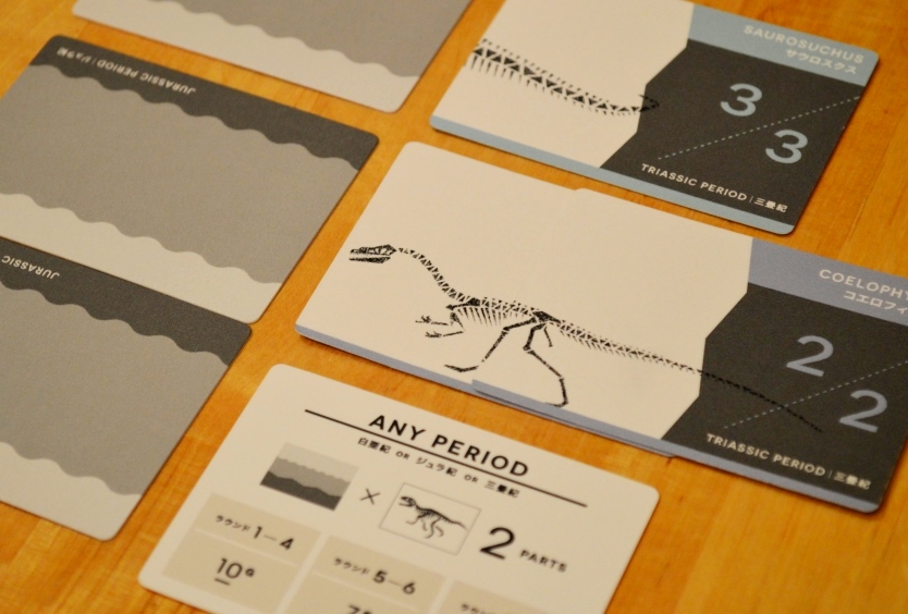 Дома ещё разложили японскую забаву про раскопки окаменелостей. Посредством размещения рабочих пытаемся собирать сеты из частей динозавров, а потом втюхивать их коллекционерам (сиюминутная прибыль) или поставлять в музеи (награда поменьше, но зато каждый раунд).