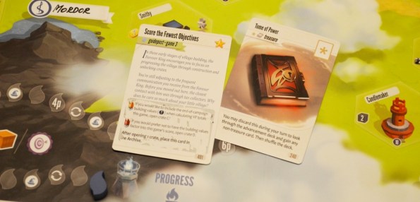 Развивают сюжет не только “ящики”, но и карточки пожеланий короля, вводящие на каждую партию определённые правила и цель, за которую даётся дополнительная награда. Причём, игрок, выполнивший цель, имеет возможность стереть скрытую часть и выбрать один из предложенных вариантов, связанный с получением очков или других бонусов.