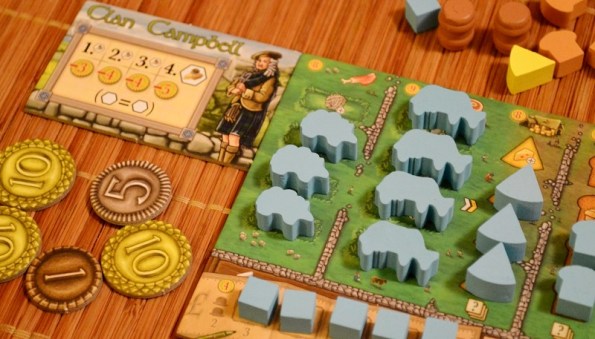 Наиболее же весомая причина, по которой мне хочется садиться за Каледонию снова и снова – это кланы с уникальными способностями (9 штук) и поиск оптимальной стратегии под каждый. Обычно намёк на верный путь даёт само свойство (и подсказка в правилах), но иногда встречаются и неочевидные варианты развития. Наиболее частая дилемма – плодить рабочих или “уходить” в товары. Ну, и, конечно, свою лепту в переосмысление плана вносит распределение жетонов раундов.