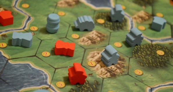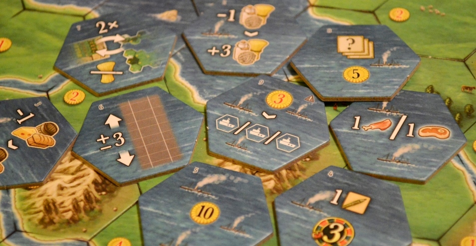Выставлять фишки можно лишь на участки, смежные с ранее «захваченными», либо согласно прокачанной навигации. Есть ещё некоторые ограничения по типам: шахтёров можно ставить только на гексы с горами, лесорубов – в лес, а производственные постройки – на равнины.