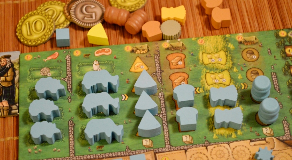 Оформление – просто мечта любителя евро. Особенно, если вам нравится переставлять и теребить в руках кастомные деревяшки. Товары, животные, маркеры – всё имеет уникальную и узнаваемую форму.