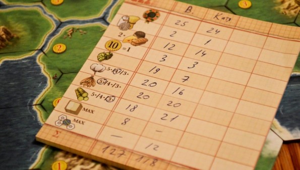 При получении импортируемых товаров следует тут же подвинуть соответствующий маркер на поле экспорта. Эти маркеры обозначают количество ввезённых товаров и повлияют на подсчёт очков.