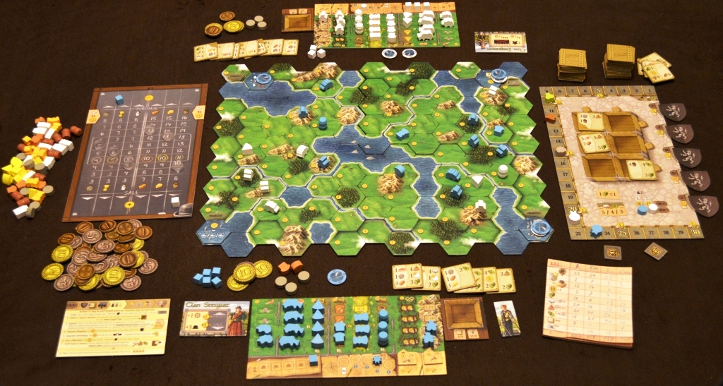 Clans of Caledonia. С тех пор, как выложил статью о первых впечатлениях, Кланы ворвались в сотню лучших на BGG. Моё позитивное мнение об игре не изменилось, но немного жаль, что всё никак не удаётся собраться больше, чем вдвоём. Хочется прочувствовать, как проявит себя рынок и как повлияет на развитие стремительная экспансия оппонентов.